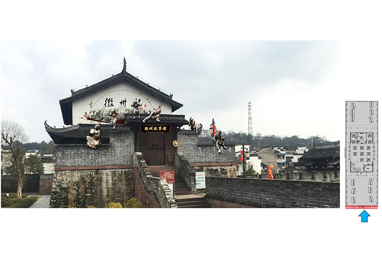 入口——提炼徽州故事里的各类元素进行装饰设计,以给观众眼前一亮的感受,吸引游客的到来。